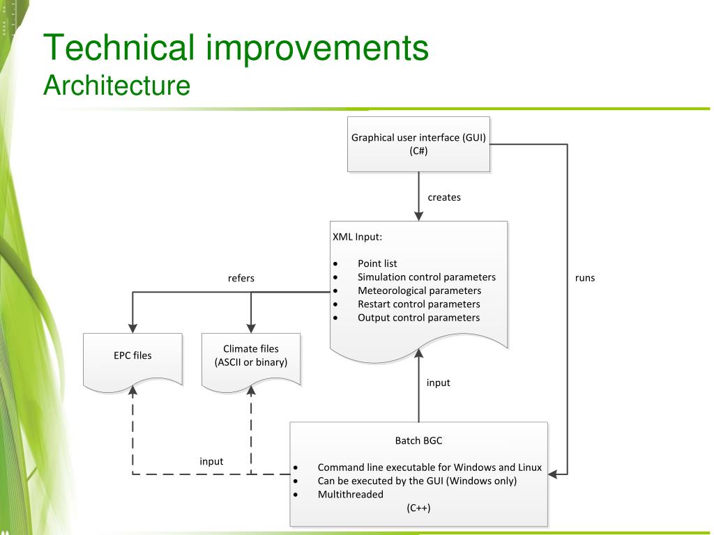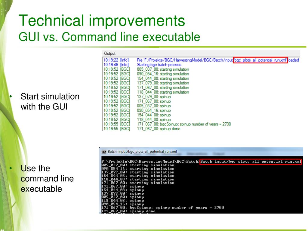 Technical improvementsGUI vs. Command line executable • Start simulation with the GUI • Use the command line executable