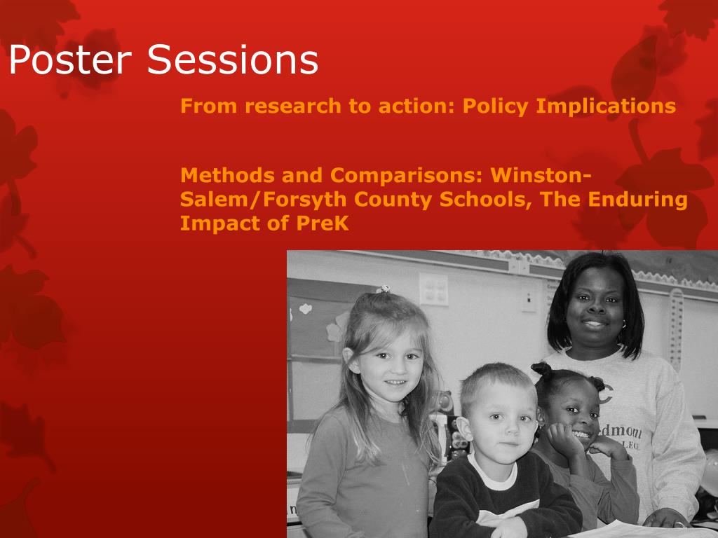 Poster Sessions From research to action: Policy Implications Methods and Comparisons: Winston-Salem/Forsyth County Schools, The Enduring Impact of PreK