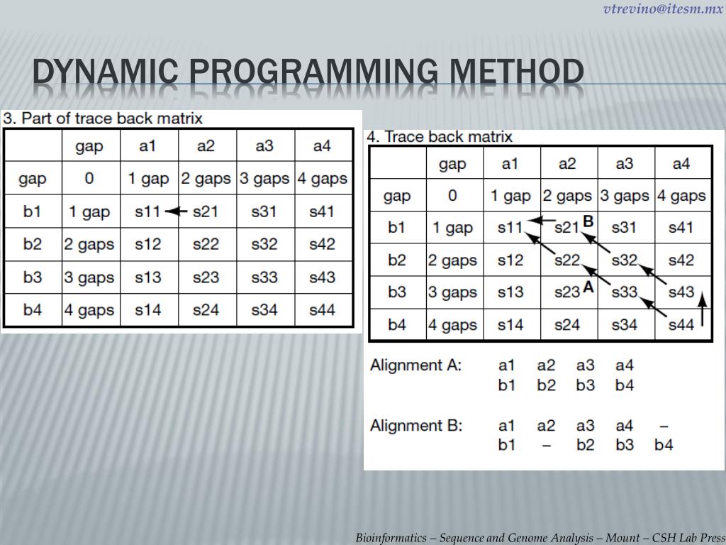 Dynamic Programming Method Bioinformatics – Sequence and Genome Analysis – Mount – CSH Lab Press