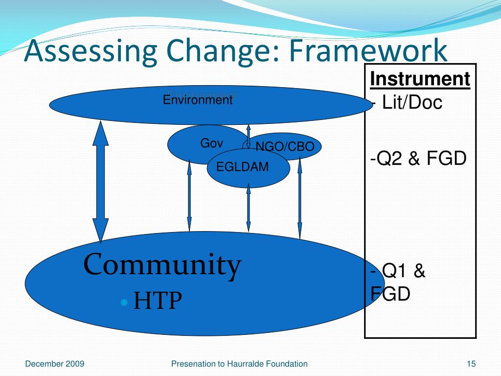 Assessing Change: Framework Community • HTP Environment Gov NGO/CBO EGLDAM Presenation to Haurralde Foundation