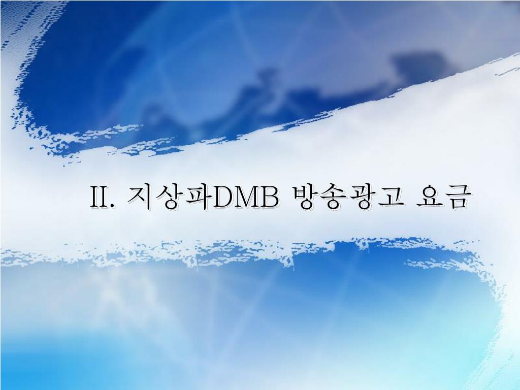 지상파 DMB 방송광고 판매 안내. 2006. 2. 목 차. Ⅰ. 지상파 DMB 매체 개요. Ⅱ. 지상파 DMB 방송광고 요금. Ⅲ. 지상파 DMB 판매방안. Ⅳ. Good Reasons to Choose 지상파 DMB. I. 지상파 DMB 매체 개요. 사업자. 1. 지상파 DMB SO FAR. 지상파 DMB 6 개 사업자 선정. 2005. 3. 28. 지상파 DMB 시범방송 실시. 2005. 9. 1. 지상파 DMB 본방송 실시 (5 개사 )