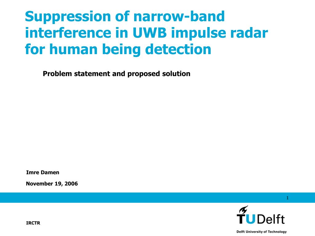 Problem statement and proposed solution Suppression of narrow-band interference in UWB impulse radar for human being detection Imre Damen IRCTR