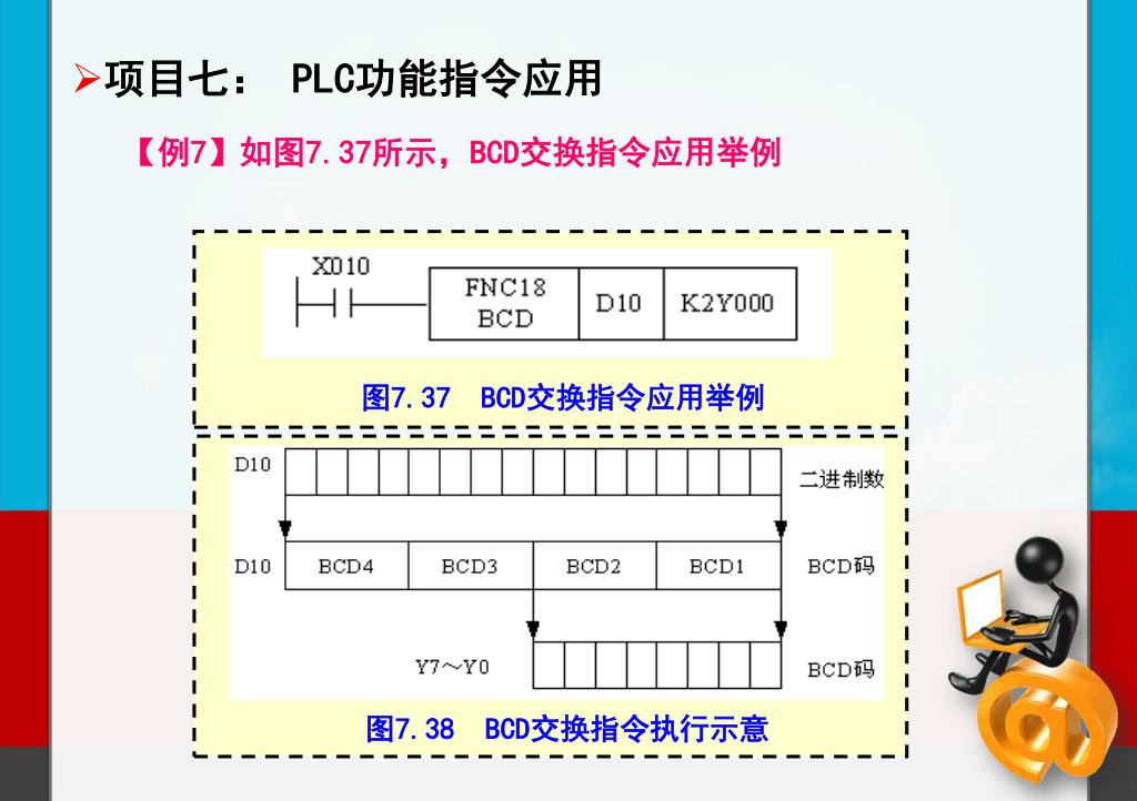 【例7】如图7.37所示,BCD交换指令应用举例 项目七: PLC功能指令应用 图7.37 BCD交换指令应用举例 图7.38 BCD交换指令执行示意