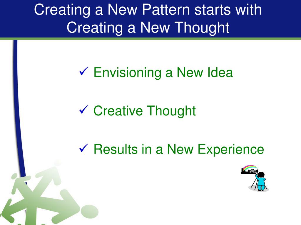 Creating a New Pattern starts with Creating a New Thought Envisioning a New Idea Creative Thought Results in a New Experience
