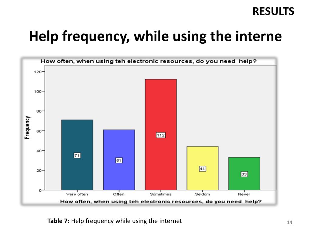 RESULTS Help frequency, while using the interne Table 7: Help frequency while using theinternet
