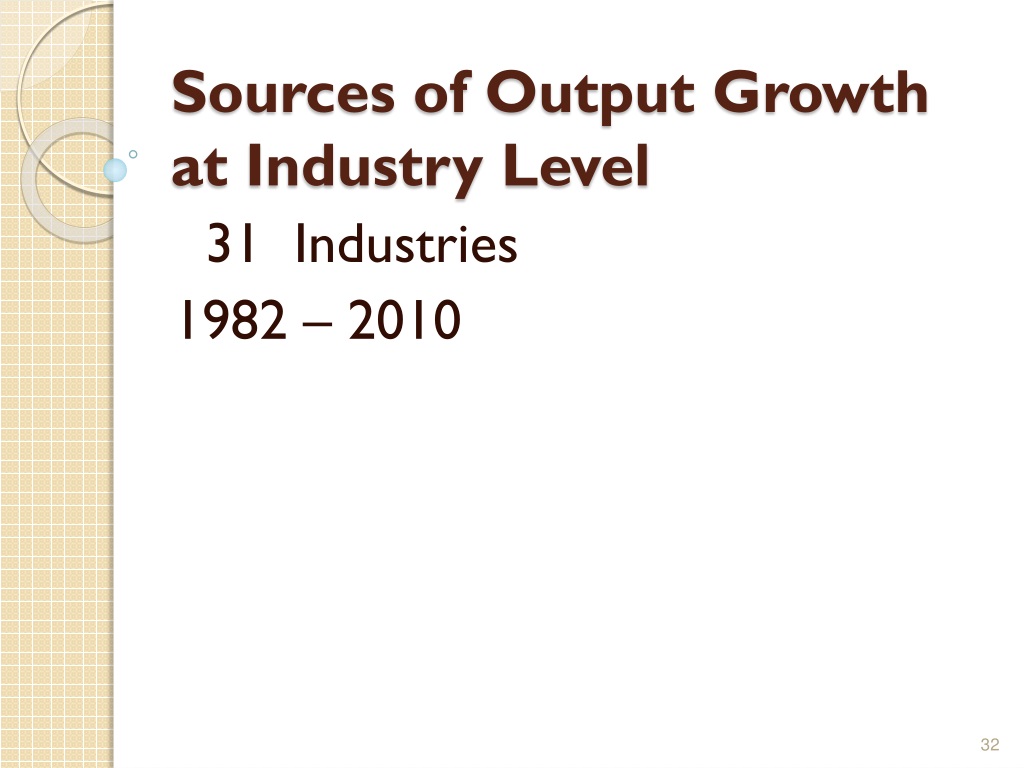 Sources of Output Growthat Industry Level 31 Industries 1982 – 2010