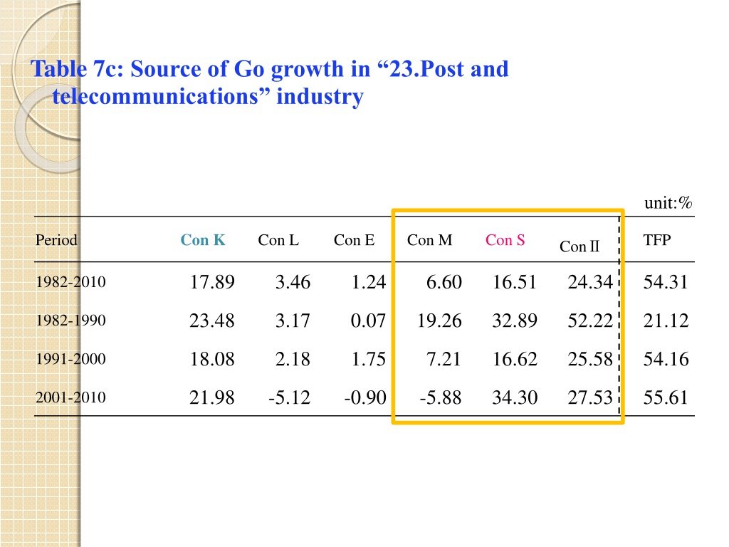 Table 7c: Source of Go growth in “23.Post and telecommunications” industry unit:%