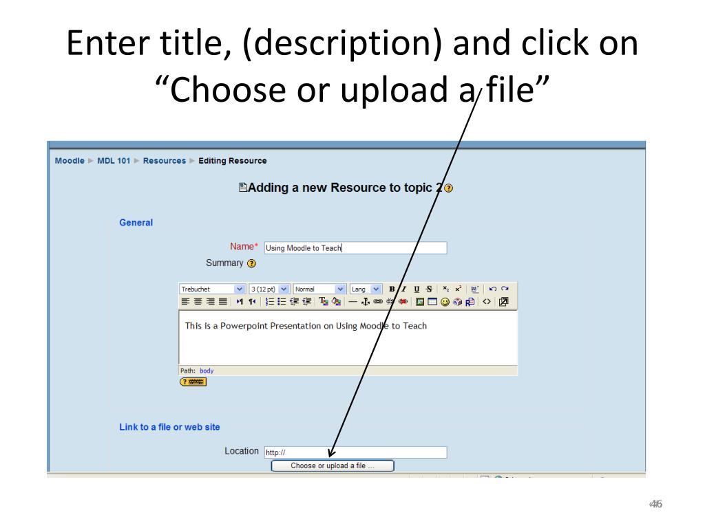 Enter title, (description) and click on “Choose or upload a file” 46