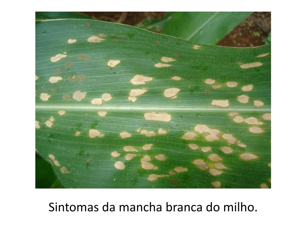 Mancha branca (etiologia indefinida) Importância e Distribuição: atualmente, uma das principais doenças da cultura do milho no Brasil, estando presente em praticamente todas as regiões de plantio de milho no Brasil. - Perdas na produção: > 60% em situações de ambiente favorável e de uso de cultivares suscetíveis.