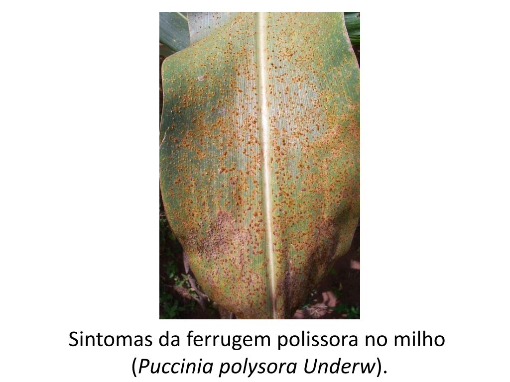 Disseminação • Os uredósporos são o inóculo primário e secundário, sendo transportados pelo vento ou em material infectado. • Não são conhecidos hospedeiros intermediários de P. zeae. • Condições de alta temperatura (22-34°C), alta umidade relativa e baixas altitudes.