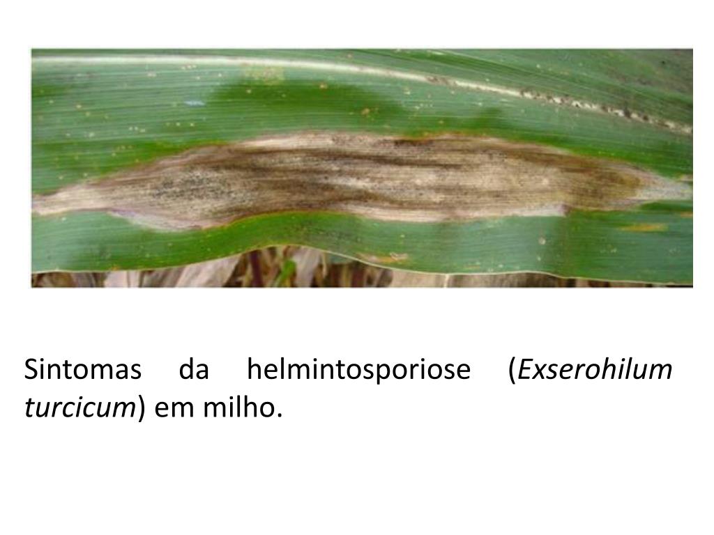 Sintomas da helmintosporiose (Exserohilumturcicum) em milho.