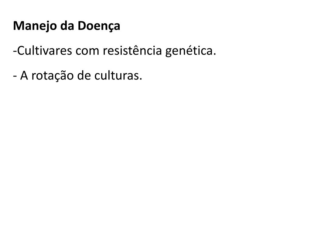 Manejo da Doença • Cultivares com resistência genética. • A rotação de culturas.