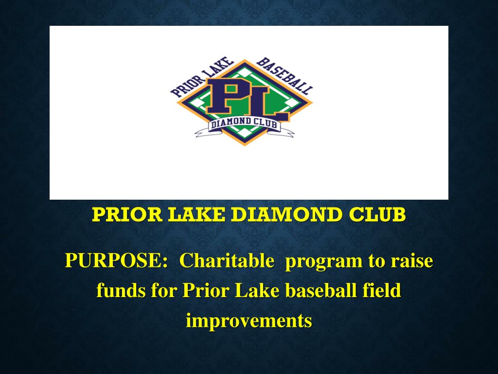 PRIOR LAKE DIAMOND CLUB PURPOSE: Charitable program to raise funds for Prior Lake baseball field improvements