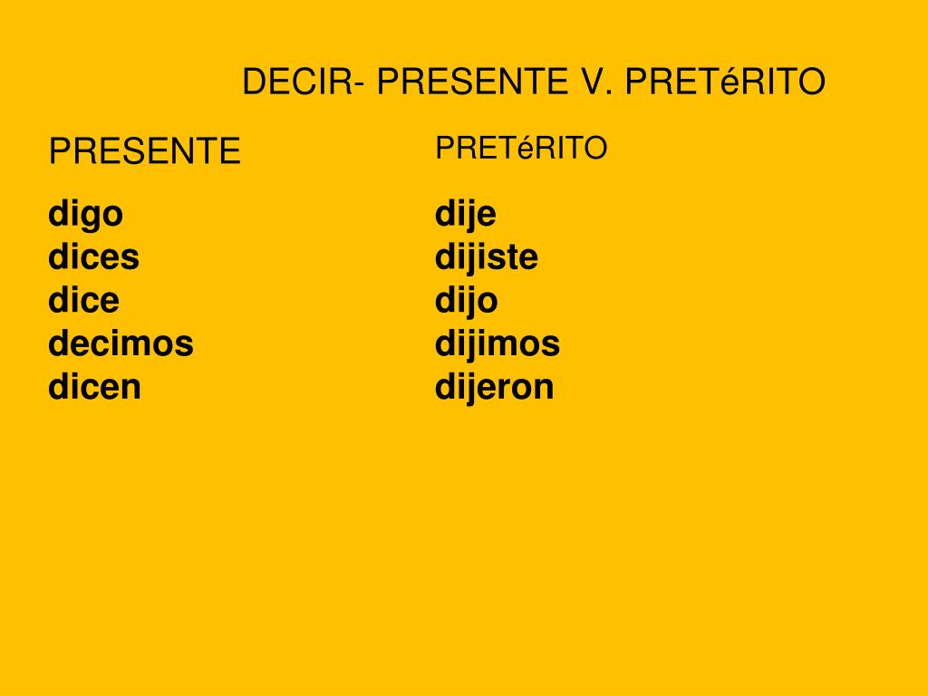 DECIR- PRESENTE V. PRETéRITO PRESENTE PRETéRITO