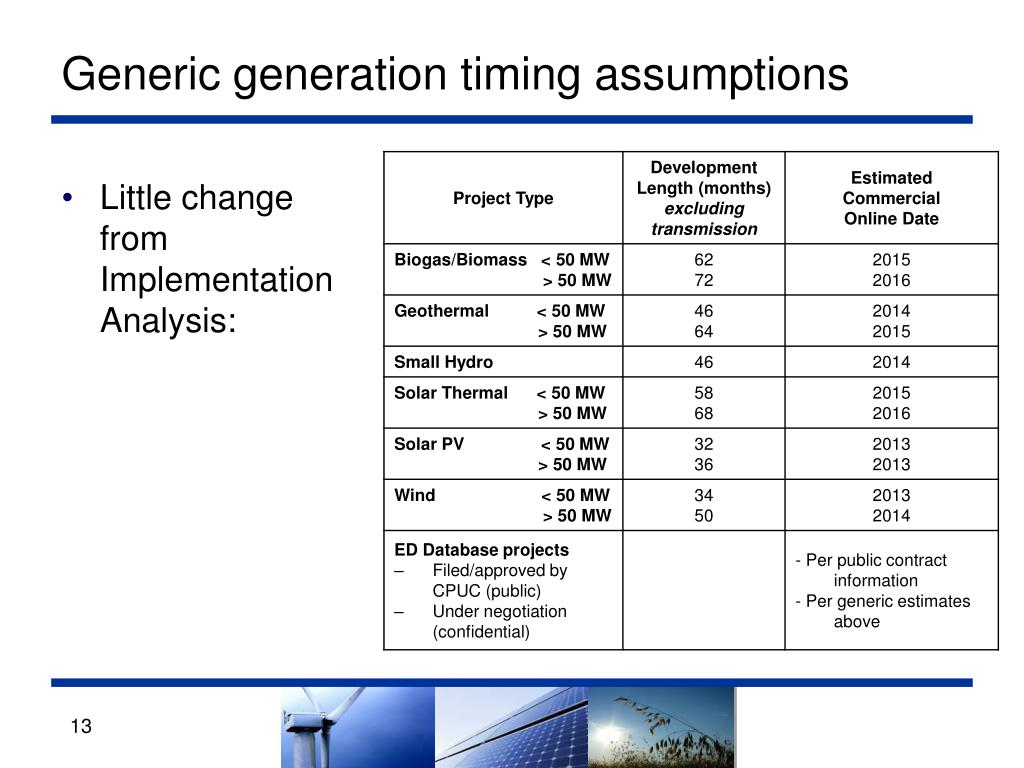 Example – Aspen Environmental Group research into generation timelines