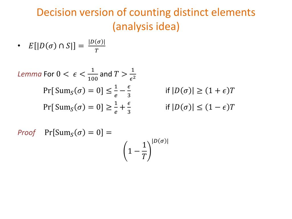 Decision version of counting distinct elements (analysis idea) LemmaFor and if if Proof