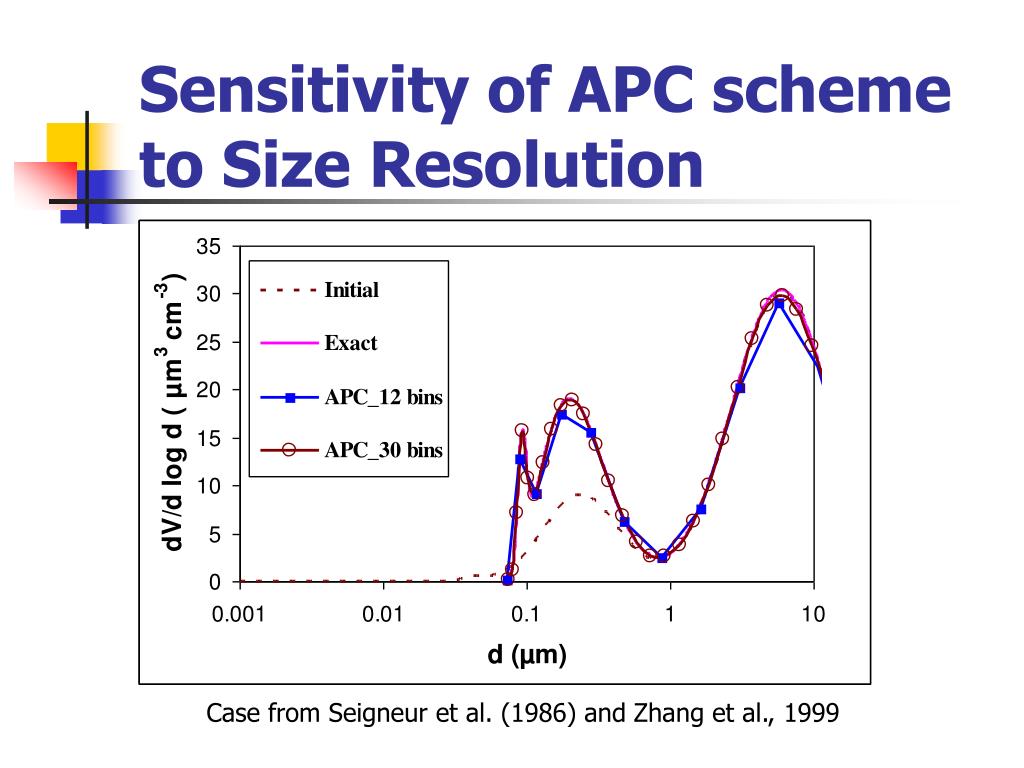 Sensitivity of APC scheme to Size Resolution Case from Seigneur et al. (1986)andZhang et al., 1999