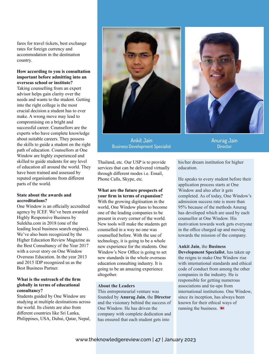 The Most Trusted Study Abroad Consultants In India, 2023 January 2023 | 46 | www.theknowledgereview.com