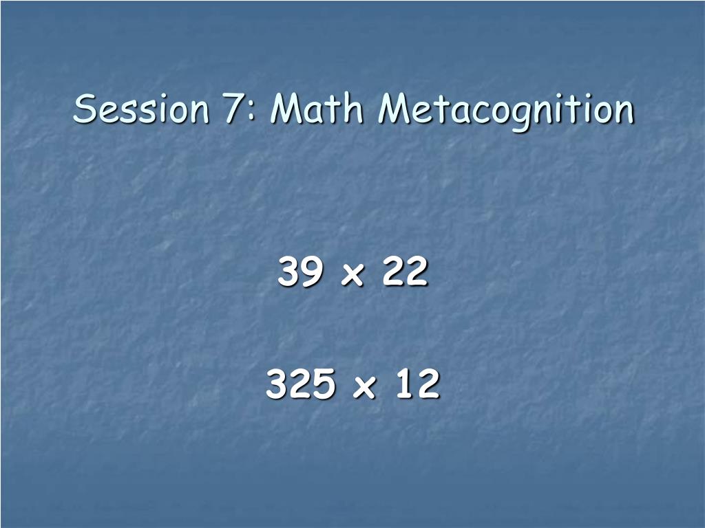 Session 7: Math Metacognition 39 x 22 325 x 12