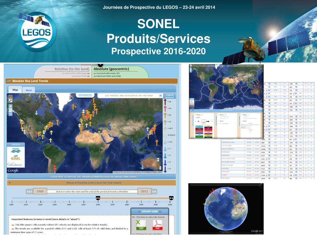 Journées de Prospective du LEGOS – 23-24 avril 2014 SONEL Produits/Services Prospective 2016-2020