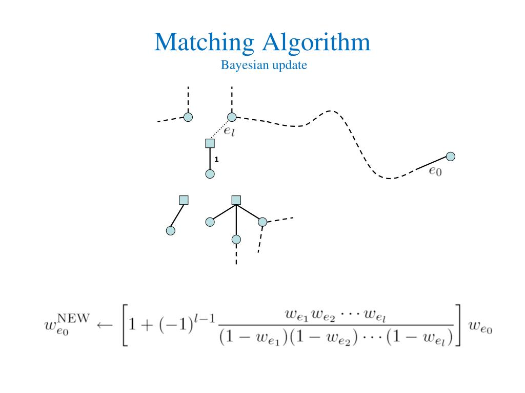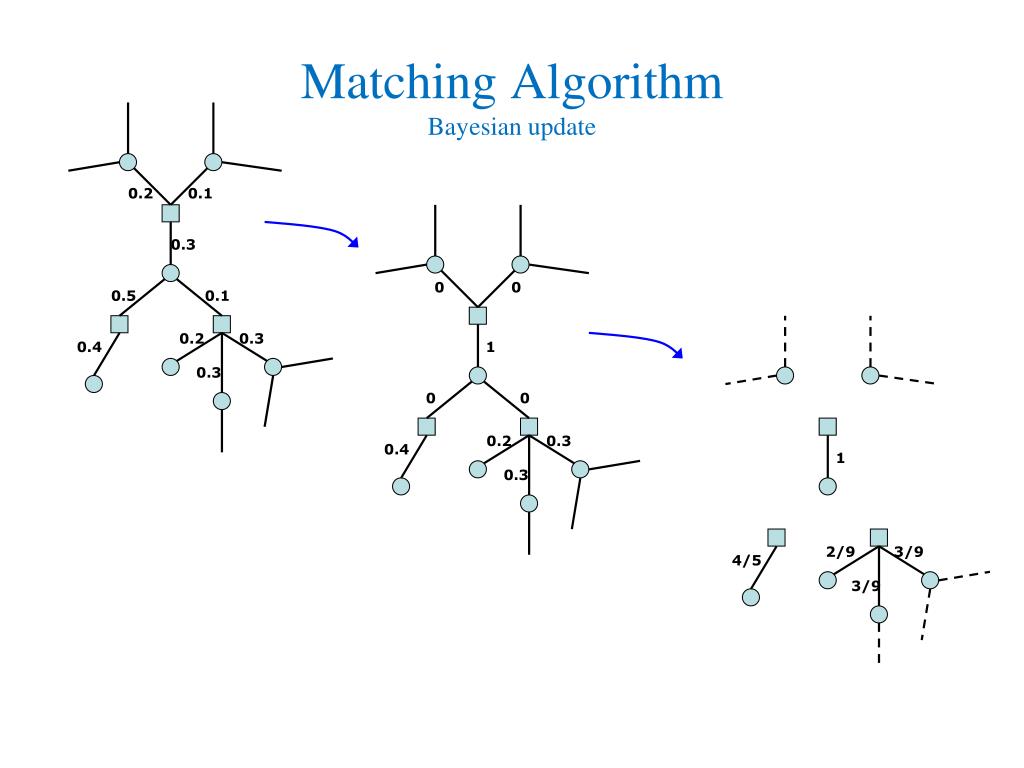 Matching AlgorithmBayesian update 0.2 0.1 0.3 0 0 0.5 0.1 0.2 0.3 0.4 1 0.3 0 0 0.2 0.3 0.4 1 0.3 2/9 3/9 4/5 3/9