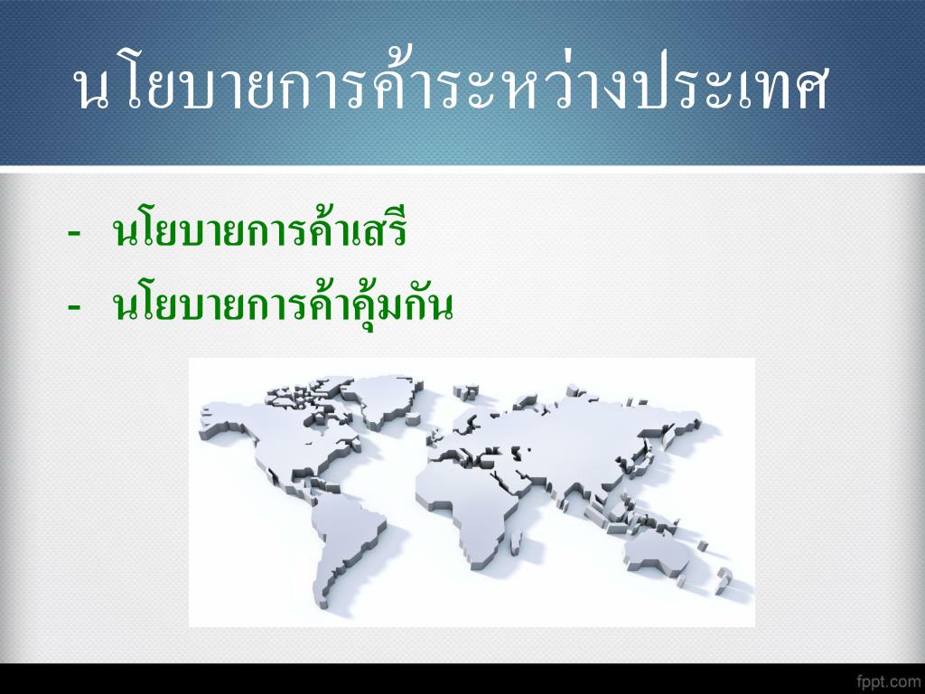 นโยบายการค้าระหว่างประเทศนโยบายการค้าระหว่างประเทศ - นโยบายการค้าเสรี - นโยบายการค้าคุ้มกัน