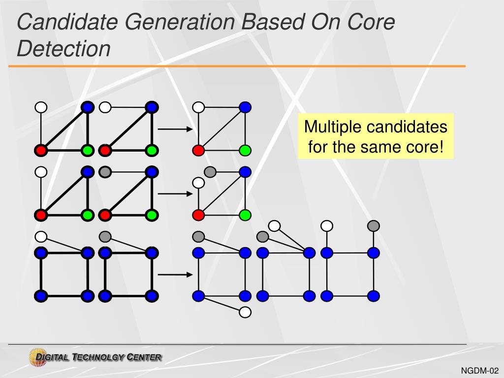 Candidate Generation Based On Core Detection Multiple candidates for the same core! NGDM-02