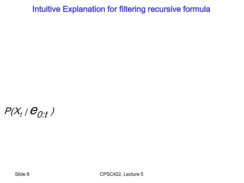 Intuitive Explanation for filtering recursive formula P(Xt| e0:t) CPSC422, Lecture 5