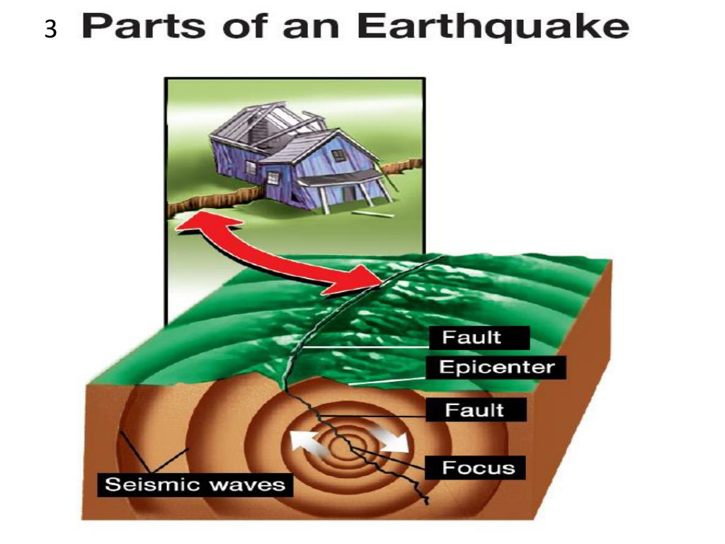 2.What causes earthquake? • An earthquakeis the movement of Earth’s crust resulting from the release of built-up potential energy between two stuck lithospheric plates.