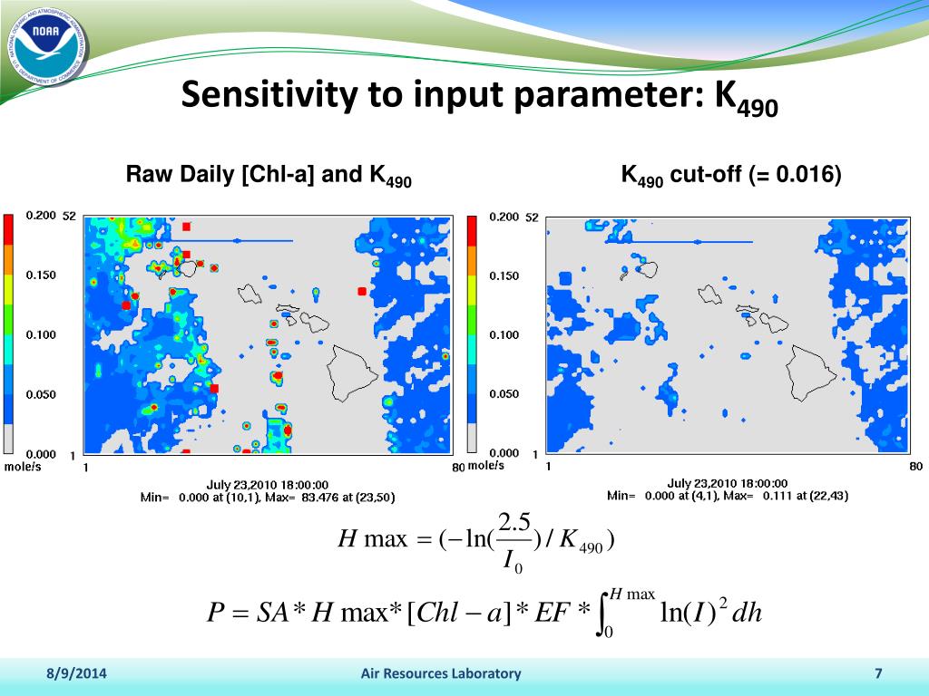 Raw Daily [Chl-a] and K490 K490 cut-off (= 0.016) Sensitivity to input parameter: K490 Air Resources Laboratory