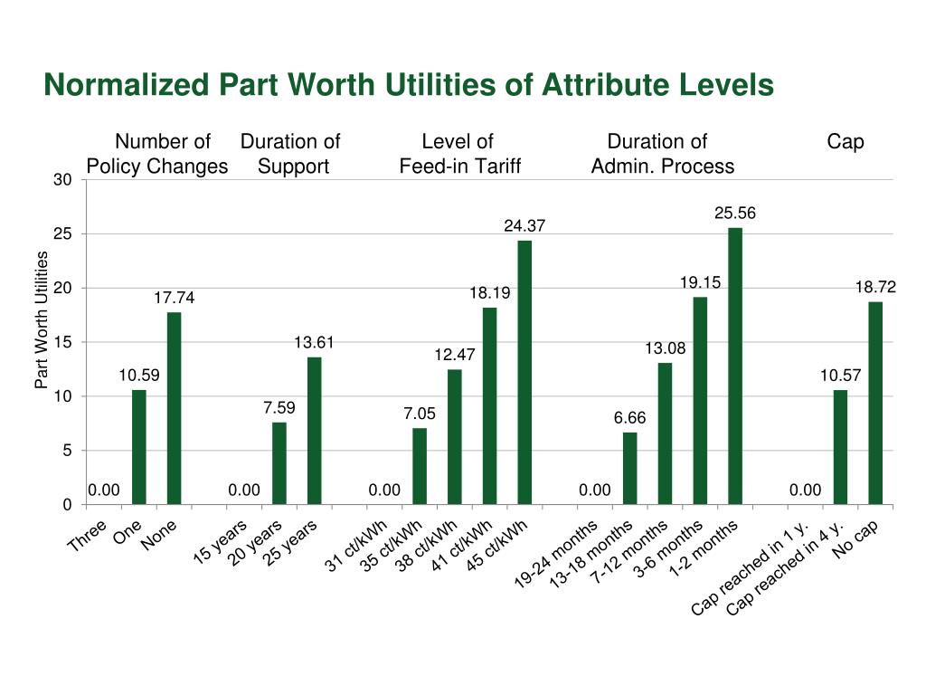 Relative Importance of Attributes • How important are various attributes of solar energy policies in influencing project developers' decision to invest in a given country?