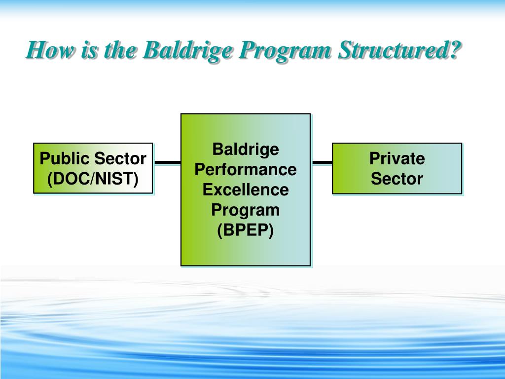 How is the Baldrige Program Structured? BaldrigePerformance Excellence Program (BPEP) Public Sector (DOC/NIST) Private Sector