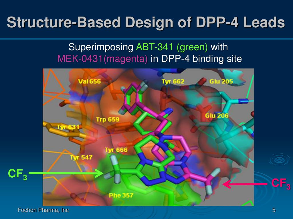 Structure-Based Design of DPP-4 Leads Superimposing ABT-341 (green)with MEK-0431(magenta) in DPP-4 binding site CF3 CF3