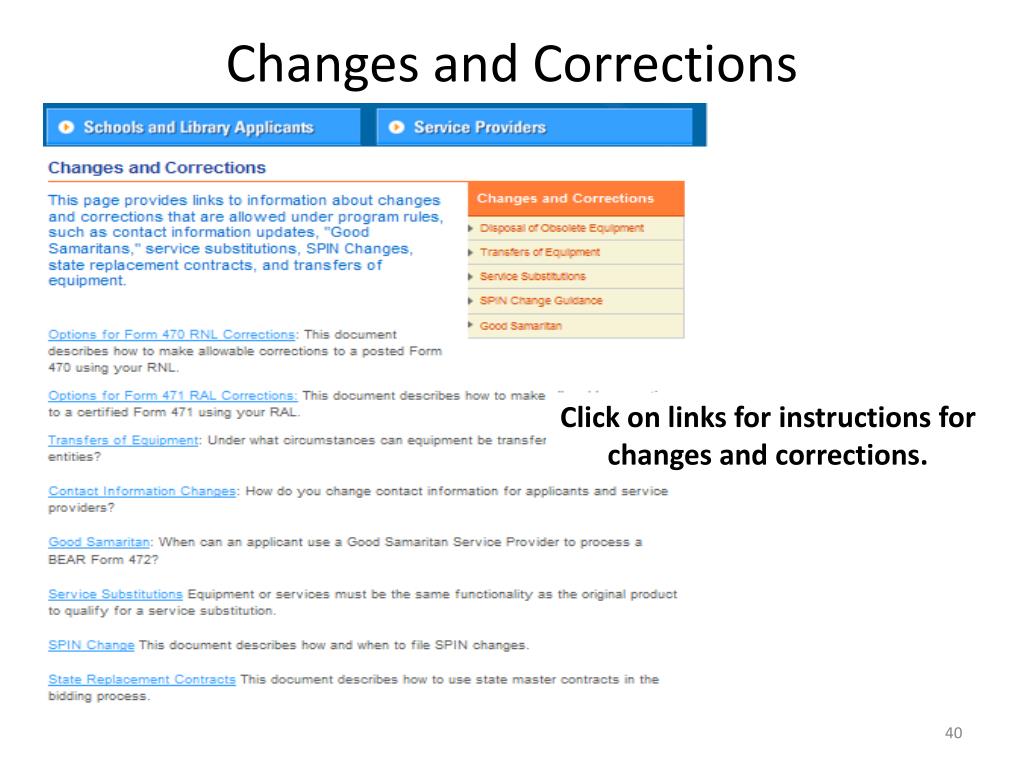 Changes and Corrections Click on links for instructions for changes and corrections.