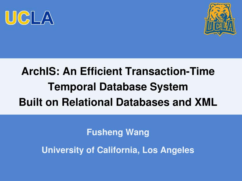 ArchIS: An Efficient Transaction-Time Temporal Database SystemBuilt on Relational Databases and XML Fusheng Wang University of California, Los Angeles