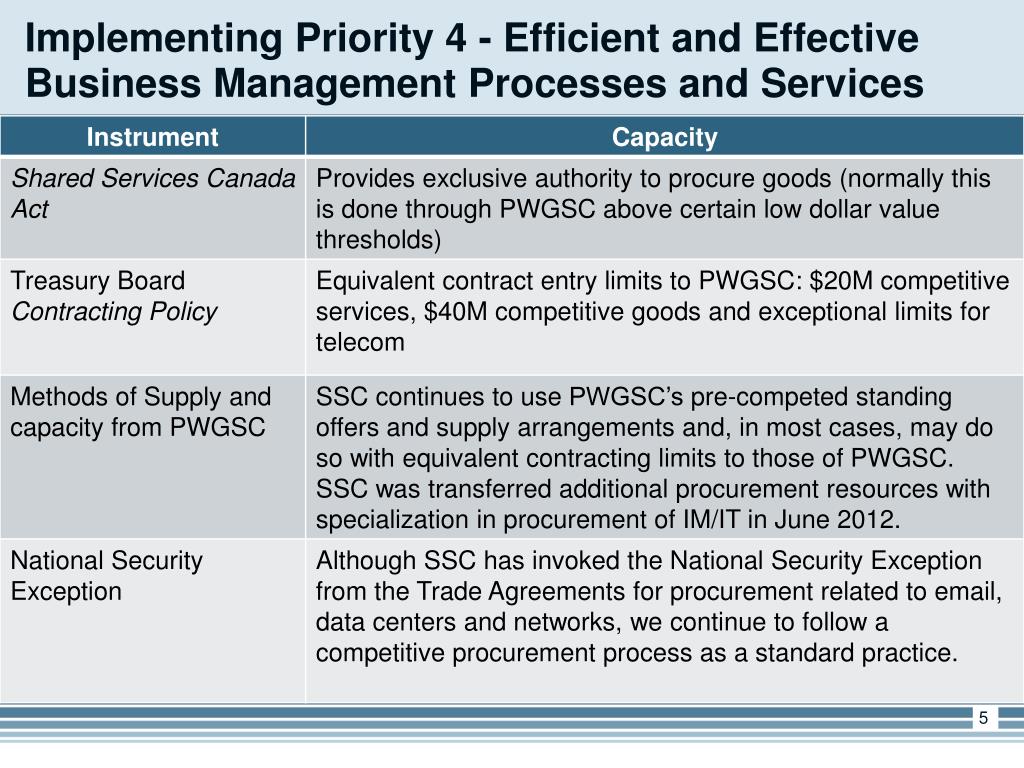 Implementing Priority 4 - Efficient and Effective Business Management Processes and Services
