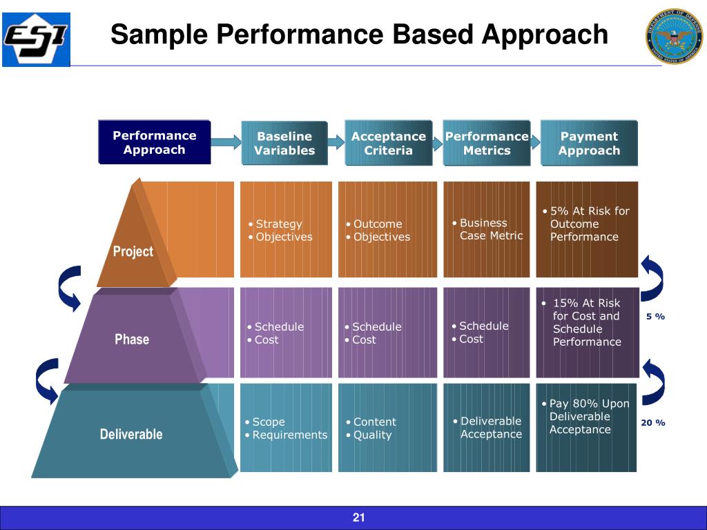 Improvement In Business Metrics • Vendor accountable for end results as defined in established metrics Performance Based Scenarios Deliverables- based Task Orders • Pre-configured Task Orders tied to Methodology T&M Solution definition is unclear Need and solution are clear Buyer has metrics set & can quantify results desired Typical Pricing Structures