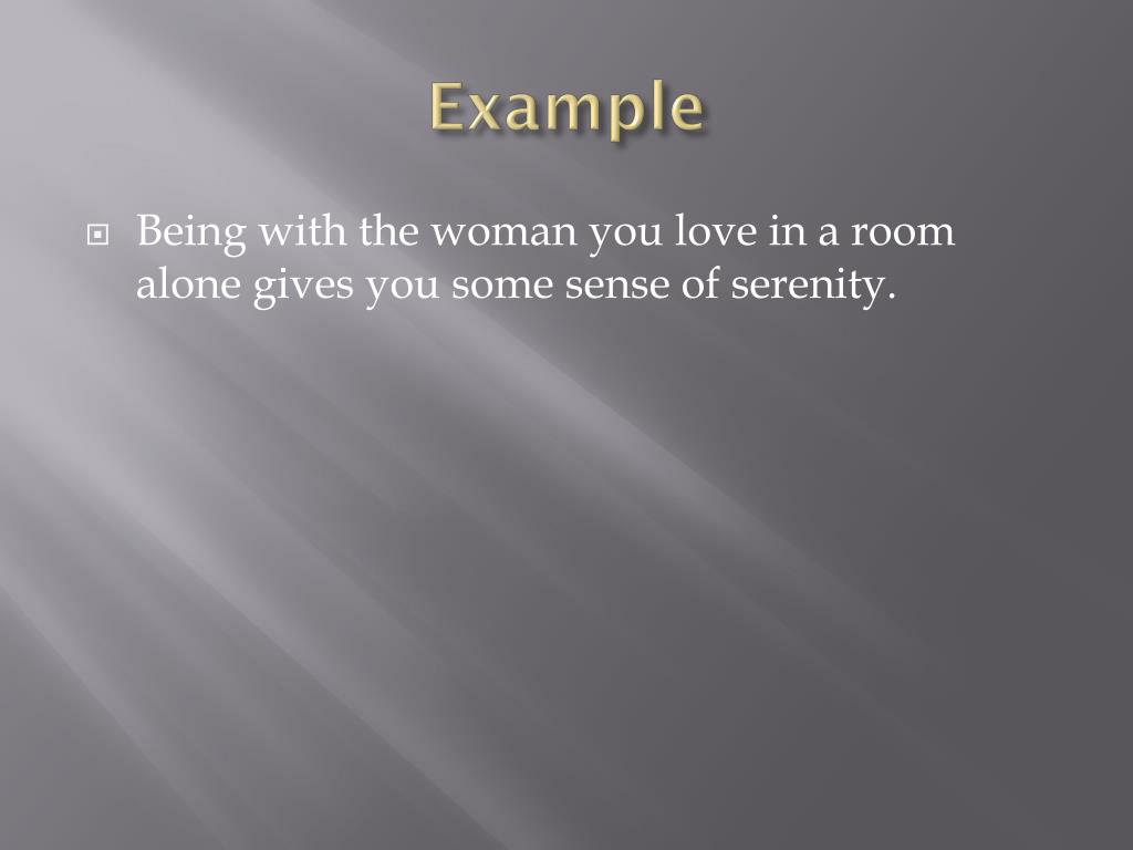 Example • Being with the woman you love in a room alone gives you some sense of serenity.