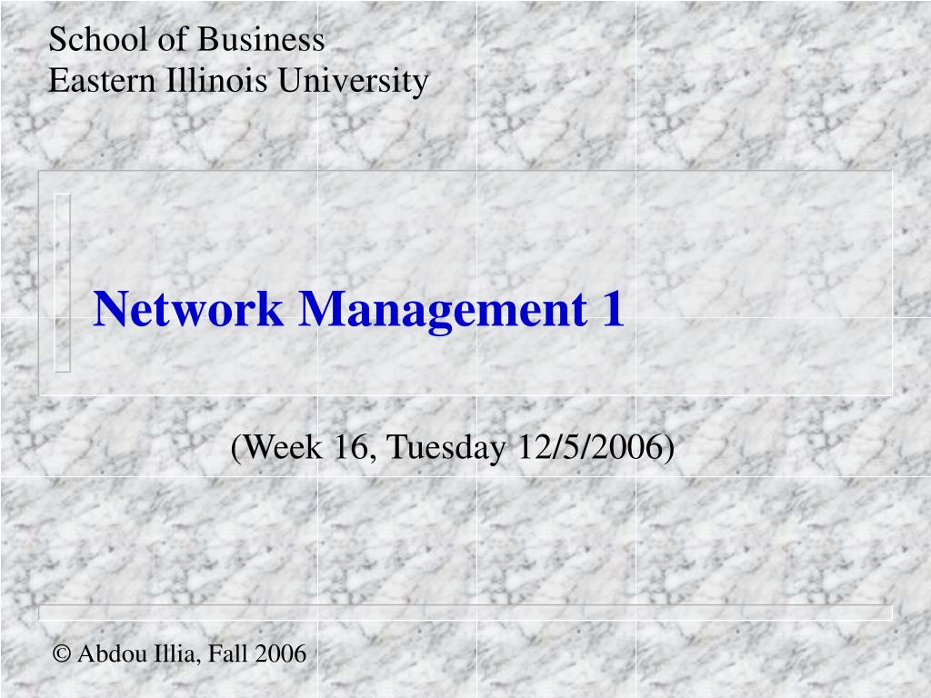 School of Business Eastern Illinois University Network Management 1 (Week 16, Tuesday 12/5/2006) © Abdou Illia, Fall 2006
