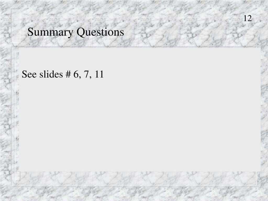 Summary Questions See slides # 6, 7, 11