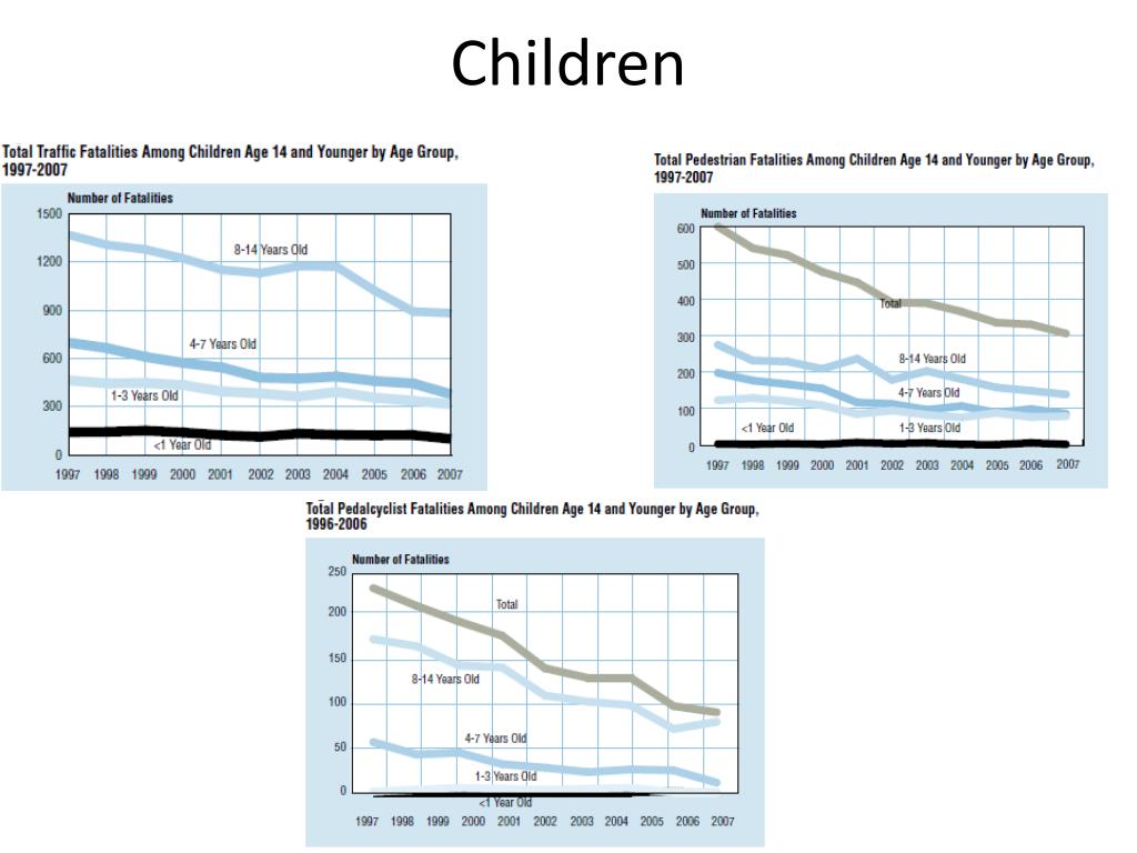 Vulnerable Road users Motorcycles, bikes, pedestrians • Bicyclists and Other Cyclists (DOT-HS-810-986) • http://onlinepubs.trb.org/Onlinepubs/nchrp/nchrp_rpt_500v10.pdf • http://onlinepubs.trb.org/onlinepubs/nchrp/nchrp_rpt_500v22.pdf