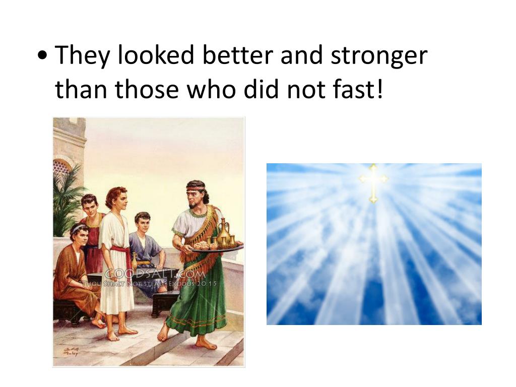 True or False? • Daniel and his friends looked weaker than the other people. • The king said that Daniel and his friends were ten times better than many other people. FALSE TRUE