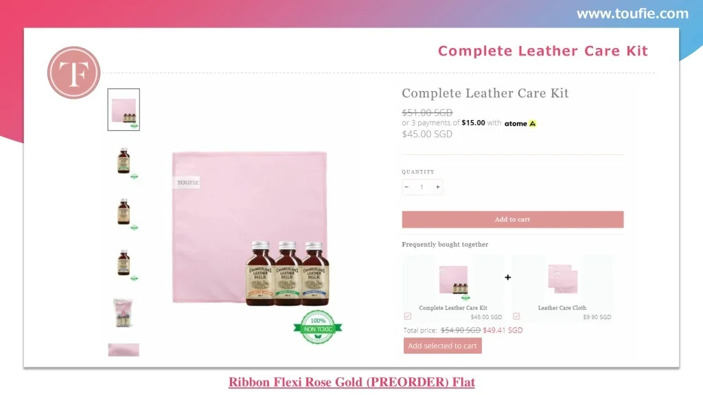www.toufie.com Complete Leather Care Kit Ribbon Flexi Rose Gold (PREORDER) Flat