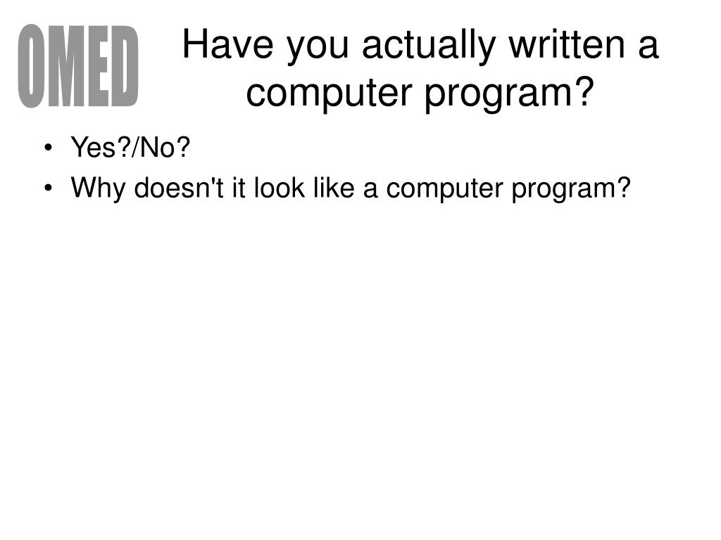 Have you actually written a computer program? • Yes?/No? • Why doesn't it look like a computer program?