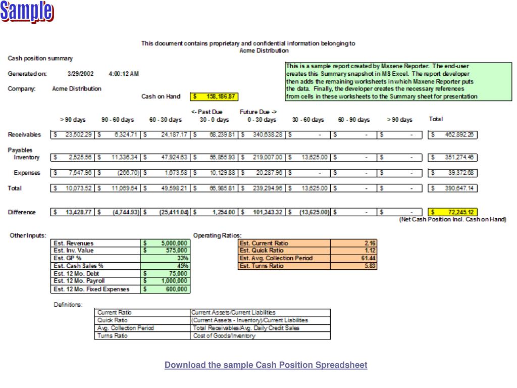 By. Application Notes Series – Cash Position. Example – Cash Position Report. Application In a distribution company the CFO wants a daily snapshot of the overall cash position of the company. Solution