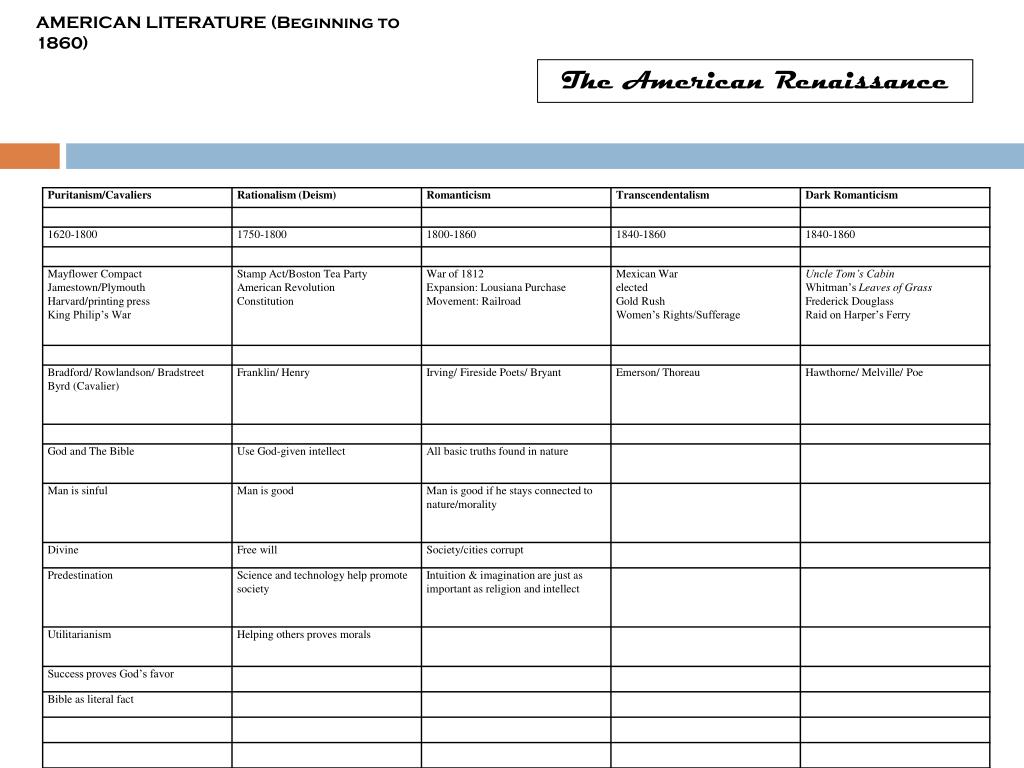 AMERICAN LITERATURE (Beginning to 1860) The American Renaissance