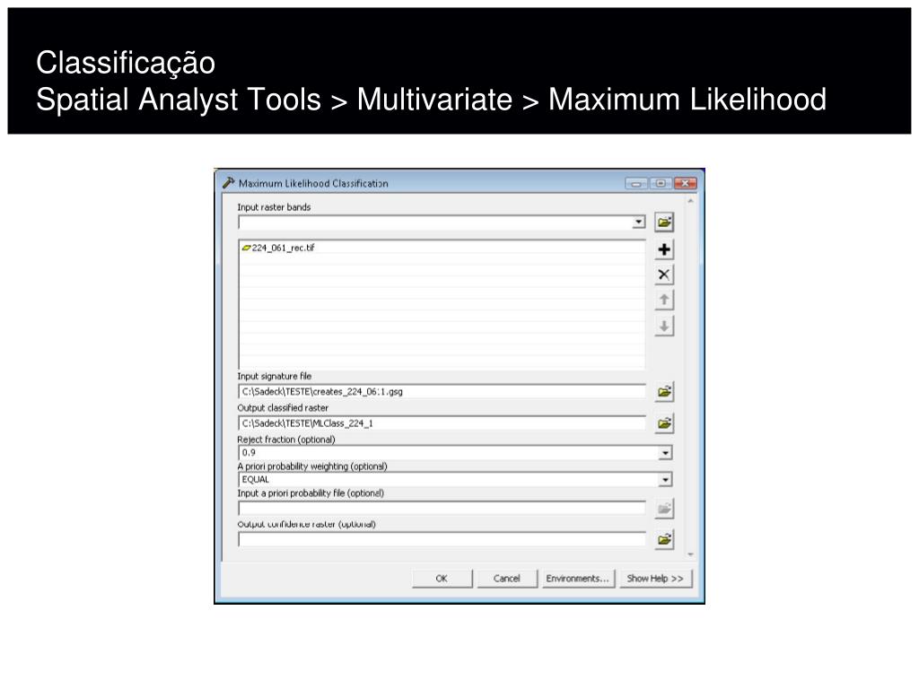 ClassificaçãoSpatial Analyst Tools > Multivariate > Maximum Likelihood