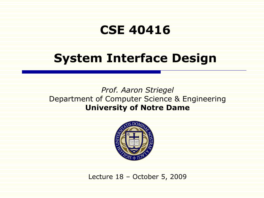 CSE 40416System Interface Design Prof. Aaron Striegel Department of Computer Science & Engineering University of Notre Dame Lecture 18 – October 5, 2009