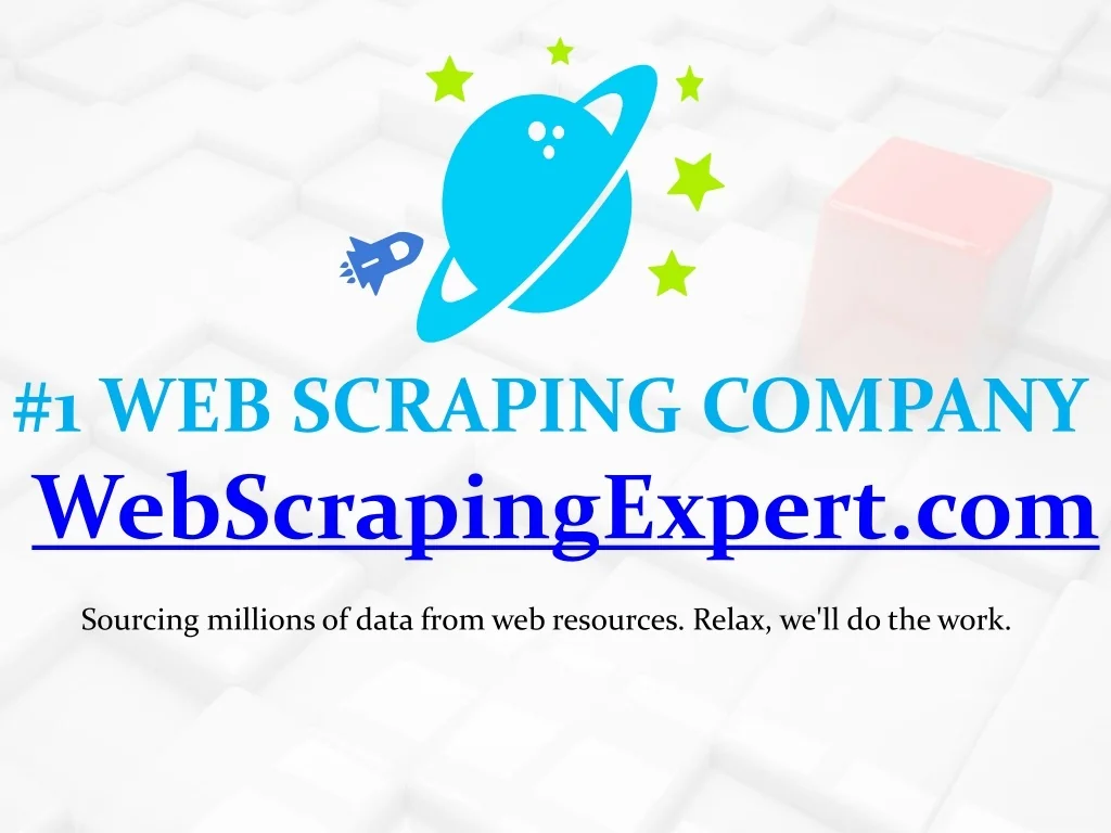 #1 WEB SCRAPING COMPANYWebScrapingExpert.com Sourcing millions of data from web resources. Relax, we'll do the work.