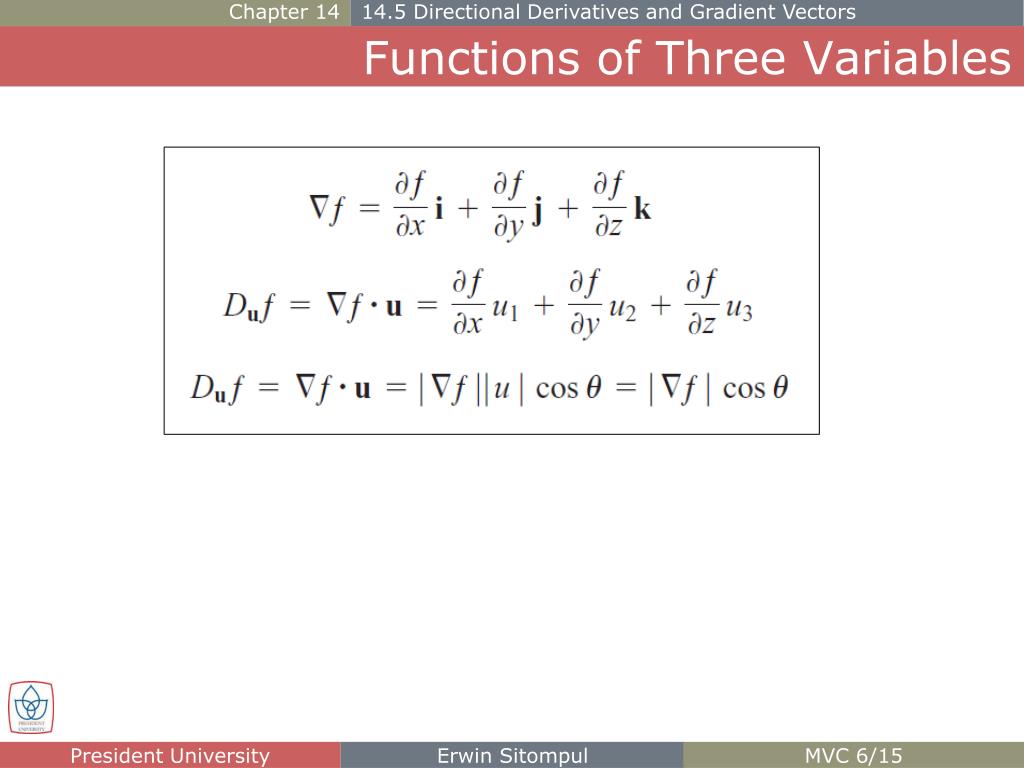 Chapter 14 14.5 Directional Derivatives and Gradient Vectors Functions of Three Variables